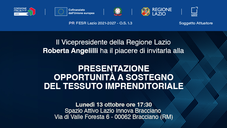 Appuntamento lunedì 13 ottobre alle ore 17:30 presso lo Spazio Attivo Lazio Innova di Bracciano – Via di Valle Foresta, 6