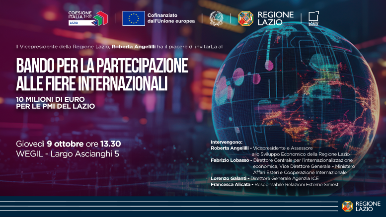 La Regione e Lazio Innova saranno presenti con un'area espositiva dedicata alle imprese e ai professionisti del Lazio